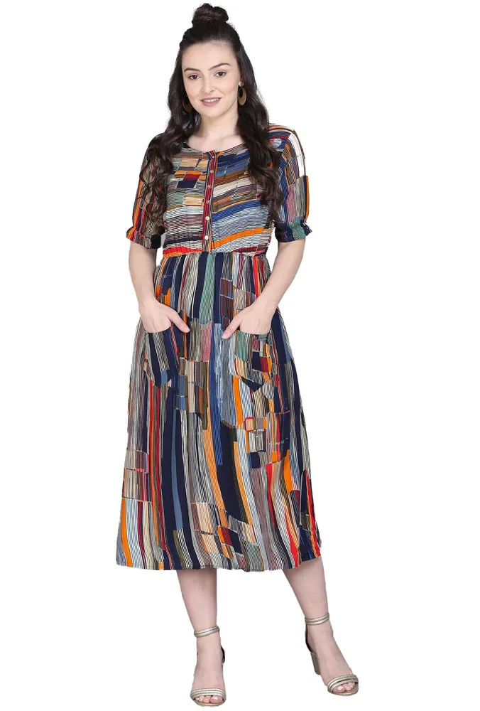 GENERIC WOMEN'S RAYON FOIL PRINTED DRESSES (MULTI COLOR)